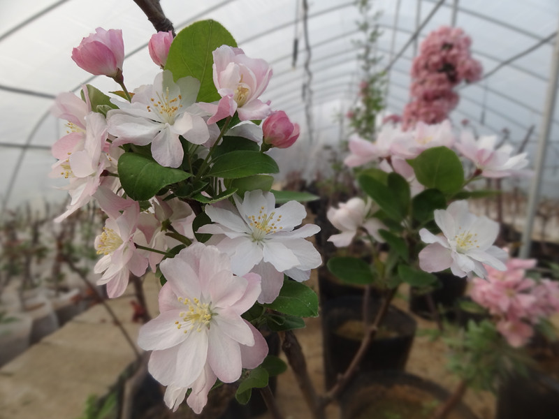 海棠是蘋果屬(Malus)多種植物和木瓜屬(Chaenomeles)幾種植物的通稱與俗稱。代表植物海棠花(學(xué)名:Malus spectabilis)和木瓜(學(xué)名:Chaenomeles sinensis)都是薔薇科的灌木或小喬木,為中國著名觀賞樹種,各地習(xí)見栽培。園藝變種有粉紅色重瓣者和白色重瓣者。海棠類多為用于城市綠化、美化的觀賞花木(雖然其中不乏果實有很高食用價值的品種)。山東泰安金楓園林綠化長期大量供應(yīng)4-8公分海棠樹苗,歡迎新老客戶咨詢,質(zhì)量優(yōu),守信用,成活率高.下圖為基地實拍海棠樹苗: