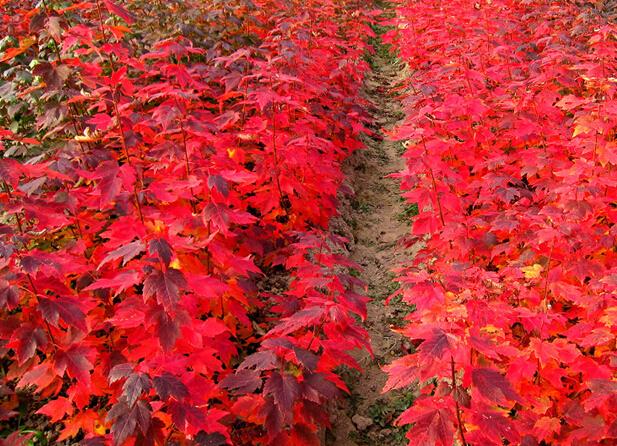 紅點(diǎn)紅楓耐熱性強(qiáng)、生長(zhǎng)迅速,它的樹葉較小,葉面較厚,樹葉更密,觀賞效果更美,夏季葉片顏色為深綠色,秋天顏色鮮艷,為亮紅色,葉片顏色持續(xù)時(shí)間長(zhǎng)久;紅點(diǎn)紅楓非常對(duì)稱,生長(zhǎng)均衡,樹枝分叉角度良好,外形優(yōu)美,樹形垂直向上呈飽滿金子塔形,是非常理想的對(duì)稱性景觀苗木。