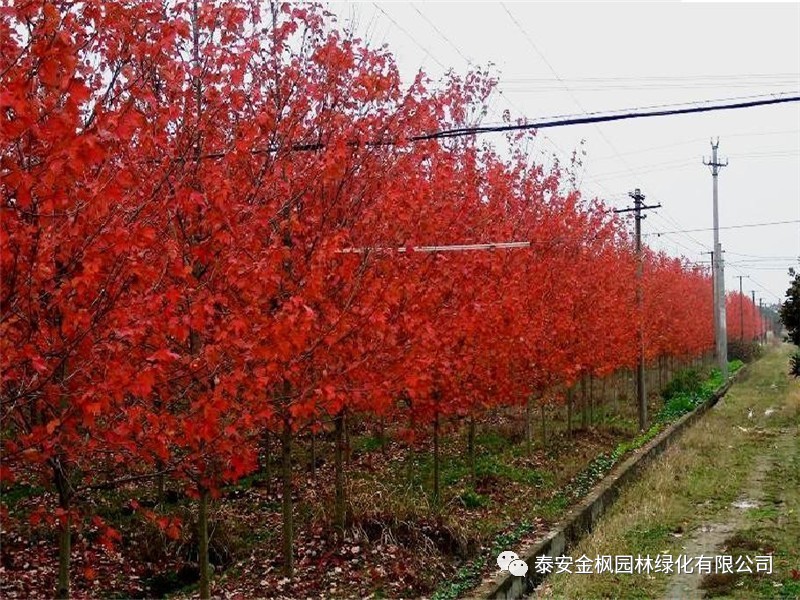 紅楓是一種非常美麗的觀葉樹種,其葉形優(yōu)美,紅色鮮艷持久,樹姿美觀。廣泛用于園林綠地及庭院做觀賞樹,以孤植、散植為主,宜布置在草坪中央,高大建筑物前后、角隅等地,紅葉綠樹相映成趣。同時也象征了人們的生活更加紅紅火火、甜甜美美,深受園林種植者和老百姓的喜愛。