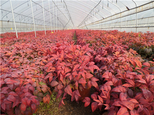 火焰南天竹常綠灌木、矮生匍匐、適應(yīng)性廣、秋冬紅葉、紅葉持久、四季不落葉、管理簡單、以及工廠化生產(chǎn)方式,對這樣的產(chǎn)品,無論是工程應(yīng)用還是庭園配置,市場前景非常寬廣,尤其在北方冬季,不但能彩花林下景觀,還能起到封塵固沙的生態(tài)作用。